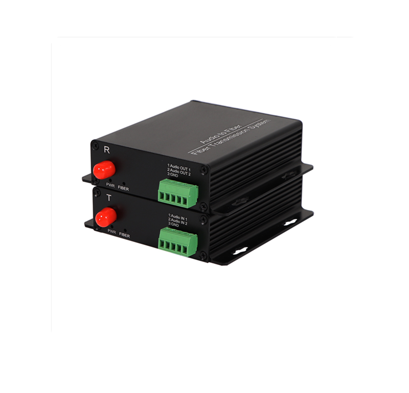 工业端子音频光端机概叙 工业端子模拟音频光端机是一种单芯片立体声模数据光端机,使用位流转换的转换器(ADC)技术。低功耗,低电压要求使用该装置非常使用在低压低功率便携式数据音频设备。 音频特征/规范 l 全尺寸输出正弦波,997Hz;MCLK=12.288MHz;Fs 基础概率模式=48kHz,SCLK=3.072MHz l 测量带宽10hz至20khz;Fs为高速率模式=96kHz 产品特性 多格式输出接口 l 兼容I2s总线和msb格式 l 高达24位串行输出 先进的音频配置 l 立体声单端输入配置 l 高线性度,动态范围和低失真 常规功能特性 l 支持1~32路非平衡模拟音频正向/双向传输 l 使用FPGA、数字编解码和时钟恢复技术,集成度高、稳定性高 l 单多模兼容,多模传输距离1KM,单模传输距离20KM,支持定制远距离100KM l LED状态指示灯,可监视设备的运行状况 l 即插即用,无需设置 设备成对使用,注意设备有发射机与接收机区分